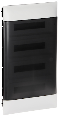 Počet pripevňovaných modulov: 18 x 4 radu ; Vzdialenosť medzi konzolami TH 35: 150 mm ; Priehľadné dvere; Vybrané vlastnosti: Max. prúd : 125 A ; Index of Protection: IP40 ; Trieda mechanickej odolnosti: IK07 ; Rozmery: 430 x 765 x 105 mm, 420 x 750 x 85 mm - podomietková skrinka ;