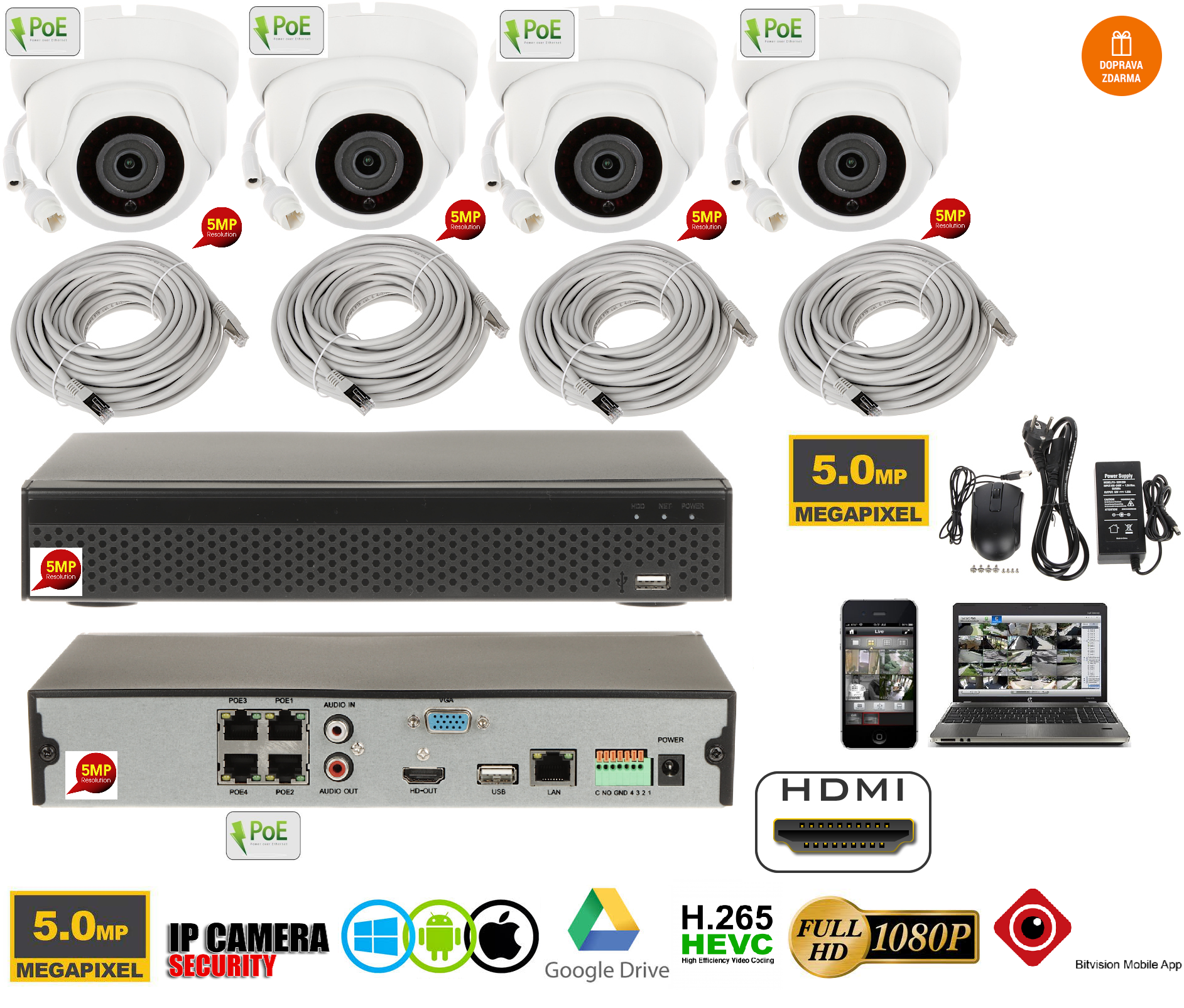 Kamerový Systém IP Poe 4ch 5mpx Dome