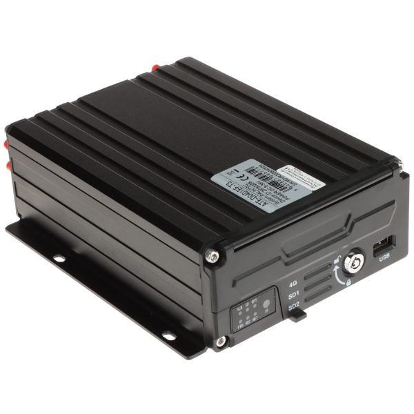 Video výstupy: 4 ks. Zástrčka M12, 4-pin ; Video výstupy: 1 ks. HDMI, 1 ks. VGA, 1 ks. CVBS ; Audio vstupy: 4 ks. ; Audio výstupy: 1 ks. ; Rozlíšenie nahrávaných videosúborov: 1920 x 1080, 1280 x 720, 720 x 576 ; Max. kapacita pamäťovej karty: 2 x 256 GB SD/SDHC ; Podporované pevné disky: 1 ks. 2.5 " - 2 TB SATA ; GPS; G-Sensor; 5G/4G/3G; Zásuvka SIM: 1 x mini SIM ; Zásuvka microSD: 2 x ; RS-485; RS-232; Port USB; Ethernet port: 1 x RJ-45 ; Wi-Fi; Vstupy/výstupy alarmov: 8 / 1 ; Prevádzková teplota: -20 °C ... 70 °C ;