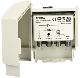Rozsah frekvencie: 470 MHz ... 862 MHz ; Zosilenie : 7 dB / 22 dB (prepínač) ;