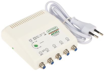 Rozsah frekvencie: 5 MHz ... 65 MHz, 85 MHz ... 862 MHz (OUT 1), 85 MHz ... 862 MHz (OUT 2-4) ; Počet vstupov/výstupov: 1 / 4 ; Zosilenie : 12 dB ;