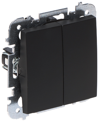 Druh zariadenia: Dvojitý lustrový vypínač ( bistabilný ) ; Menovité napätie: 250 V AC ; Menovitý prúd: 10 A (induktívna záťaž) ; Typy konektorov: Pružinové svorky ; Farba: Čierny ;