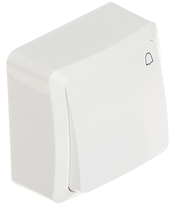 Druh zariadenia: Jednoduché momentálne tlačidlo ( zvončekový ) ; Menovité napätie: 250 V AC ; Menovitý prúd: 10 A (induktívna záťaž) ; Typy konektorov: skrutkové svorky ; Farba: Biela ;