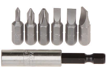 Komplet bitov s magnetickým úchytom; Veľkosti koncoviek: Philips : PH0, PH1, PH2, Plochý : 4.5 mm, 5.5 mm, 6.5 mm ; Hrúbka nástavca bitu: 1/4 " ; Vybrané vlastnosti: Produkt je vyrobený z chróm-vanádiovej ocele ;