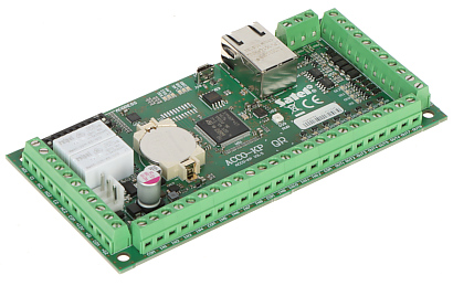 Vstupná linka: 12 ; Výstupná linka: 12 ; Prevádzkové režimy: Autonómna činnosť, Práca v systéme ACCO/ACCO NET ; Spínacie napätie relé: 250 V AC, 30 V DC ; Zaťaženie reléových kontaktov: 8 A ; Vybrané vlastnosti: Obsluha jedného priechodu s autorizáciou vstupu a výstupu, Možnosť prideľovania rôznych oprávnení jednotlivým užívateľom Identifikácia: Karta a/alebo PIN, Dallas iButton ; Napájanie: 12 V DC ;