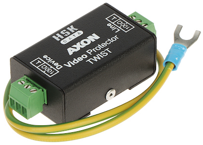 AXON-VIDEO-TWIST je navrhnutý k prepäťovej ochrane analógových kamier a DVR s analógovými vstupmi v systémoch CCTV, ktoré pre prenos video signálu používajú krútenú dvojlinku; Menovité napätie: 6 V ; Menovitý vybíjací prúd line-PG [C2]: 5 kA - 8/20 µs ; Napäťová ochranná hladina line-PG [C2]: ≤ 1000 V - 1.2 kV / 50 µs ; Šírka pásma: 0 MHz ... 30 MHz ;