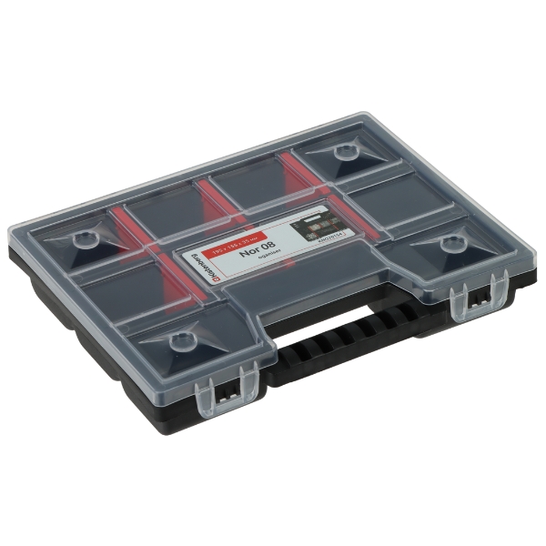 Materiál prevedenia: Plast ; Farba: Priehľadný (veko) + Čierny ; Vybrané vlastnosti: 6 vyberateľných priehradiek, rázová pevnosť ; Vonkajšie rozmery: 195 x 155 x 35 mm ; Vnútorné rozmery: 180 x 132 x 30 mm ;