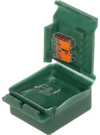 Universal mounting box filled with gel, enabling the connection of electrical, telephone and signal cables in the IP68 tightness class; Počet dráh: 3 ; Typ konektora: 3 x pružinová spona ; Prierez kábla: 0.2 ... 4 mm² - Drôt, 0.14 ... 4 mm² - Linka ; Menovité napätie: 450 V ; Menovitý prúd: 32 A ; Napäťová izolácia: 1 kV ; Index of Protection: IP68 ; Vnútorné rozmery: 36 x 34 x 21 mm ;