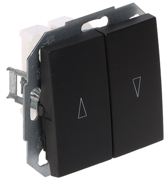 Druh zariadenia: Spínač priameho ovládania roliet ; Menovité napätie: 250 V AC ; Menovitý prúd: 10 A (induktívna záťaž) ; Typy konektorov: Pružinové svorky ; Farba: Čierny ;