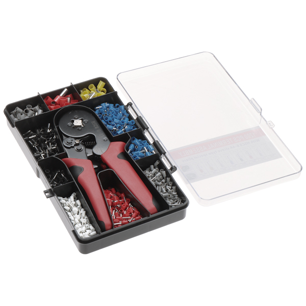 Súprava obsahuje krimpovací nástroj na káblové objímky a organizér, ktorý pojme 8 rôznych veľkostí krimpovacích koncoviek; Sada kabelových průchodek s průřezem od 0.5 mm2 do 10 mm2 s organizérem; Počet ks. v balení: = 1200 ks. (celkom) ;