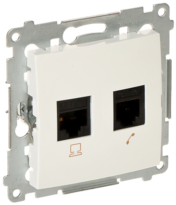 Montáž: Pod omietkové, Pripevnenie s pomocou pazúrikov alebo skrutiek ; Typy zásuviek: 1 ks. RJ-45 - UTP kat. 5e, 1 ks. RJ-12 - Cat. 3 ; Farba: Biela (RAL 9003) ;