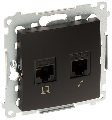 Montáž: Pod omietkové, Pripevnenie s pomocou pazúrikov alebo skrutiek ; Typy zásuviek: 1 ks. RJ-45 - UTP kat. 5e, 1 ks. RJ-12 - Cat. 3 ; Farba: Čierna matná ;
