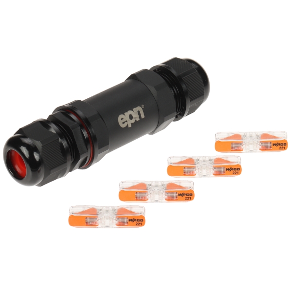 Počet priechodiek: 2 x M25 ; Počet svoriek: 2 x 4 ks. WAGO-221-2411 ; Index of Protection: IP68 ; Priemer kábla: Ø 13 ... Ø 18 mm ; Rozmery: Ø 32 x 106 ... 120 mm ;